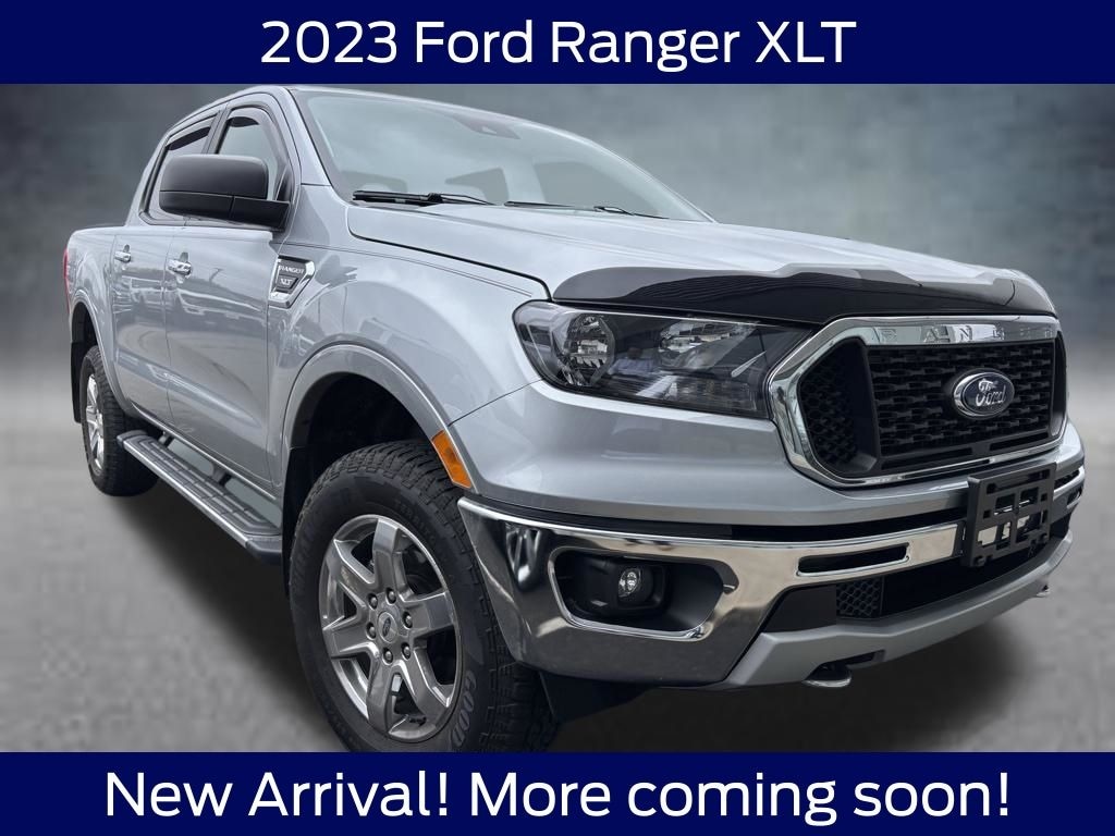 Located at Scenic Motors in Mount Airy, North Carolina, 2023 Ford Ranger XLT 4WD Silver Metallic EcoBoost 2.3L I4 GTDi DOHC Turbocharged VCT Ranger XLT, 4D Crew Cab, EcoBoost 2.3L I4 GTDi DOHC Turbocharged VCT, 10-Speed Automatic, 4WD, Silver Metallic, Medium Stone Cloth.